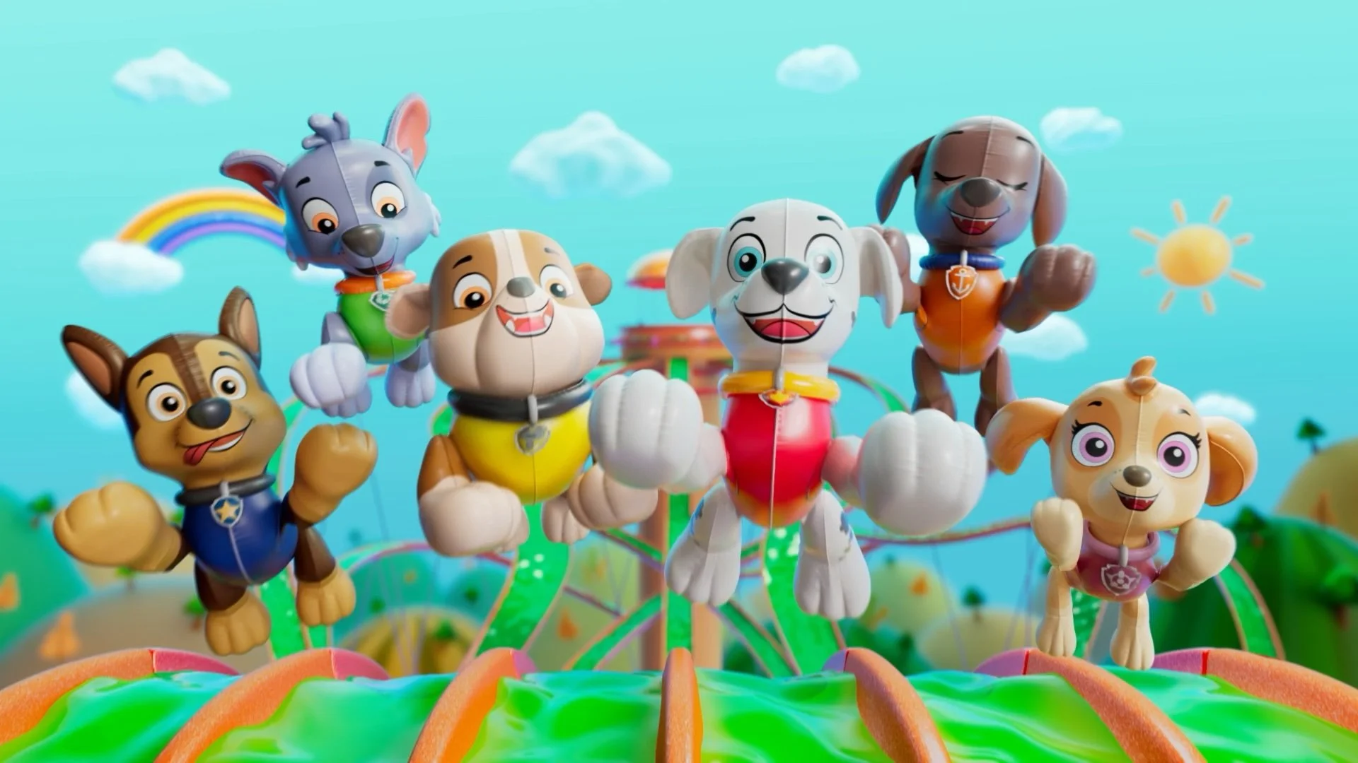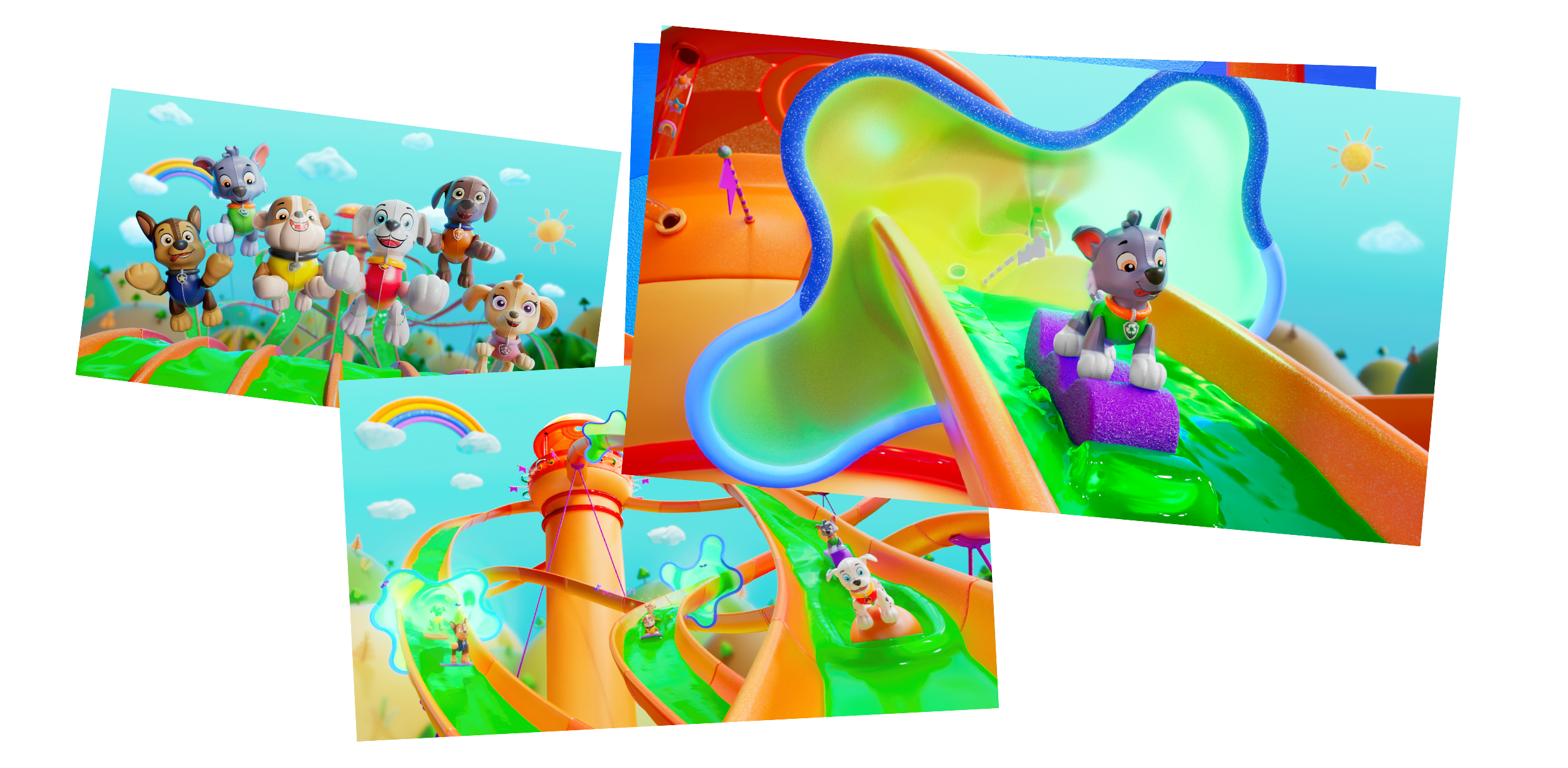 In this one-of-a-kind and fun water park, we mixed the pups’ favorite toys with slime-filled tubes and magical portals that transform them into inflatables, guiding them through a race against time all the way to a giant slime pool—where only the bravest dare to jump!