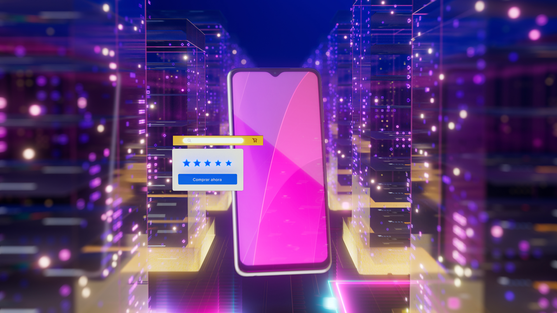 The neon lights guides us discovering the different product categories. This combination highlights our journey in a futuristic retro aesthetic.